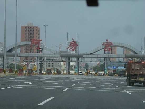 그런데 이곳은 남쪽으로는 위강(渭江), 북으로는 고원을 접하고 있어서 앞으로 넓힐 수가 없었다. 이에 진시황은 위강을 메워 남쪽의 평원까지 확장시켰고, 진시황이 중국을 통일한 후 9년(서기 212년)에는 서주(西周)의 풍고 근처에 아방궁의 전전(前殿)을 건설하기 시작했다. '아방(阿房)'이라는 것은 '근방(近旁)', 즉 함양의 근처를 의미하는 것이다. 그러나 미처 공사가 다 끝나기 전에 진시황이 죽고, 그 2세가 이어 공사를 계속하게 된다.