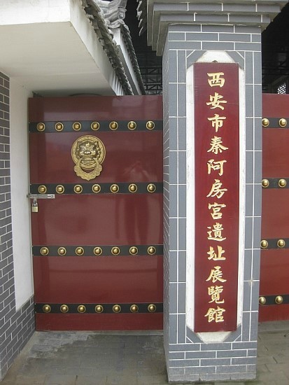 서안시 서쪽 교외에 있는 이 유적지는 동서 2,500m와 남북 1,000m의 크기로 앞의 전(殿)과 뒤의 궁(宮), 두 부분으로 나위어 있었던 것을 알 수 있다. 전의 유적지는 동서 1,300m와 남북 500m의 60만 평방미터의 면적으로 1만명을 수용할 수 있었다고 한다. 아방궁의 건설은 한편으로는 황제의 위엄을 보이기 위함이었고, 또 다른 한편으로는 더 많은 사람들로 하여금 황제에게 알현하게 하기 위함이었다.