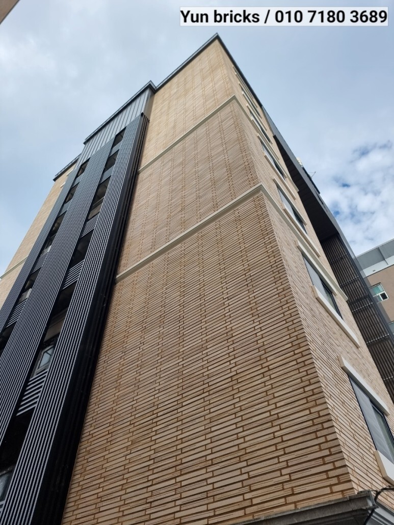 코너 타일이 생산되는 제품으로 건축물의 완성도를 높이시고 싶으신 분들은 코너타일 사용을 추천드리며 코너타일 사용 시 외벽 마감 퀄리티를 느껴 보실 수 있습니다~~ 위 현장 사진 코너 마감 부분을 보시면 모두 코너 타일 사용으로 롱 벽돌을 쓴 것 같은 조적 분위기도 나지 않나요??