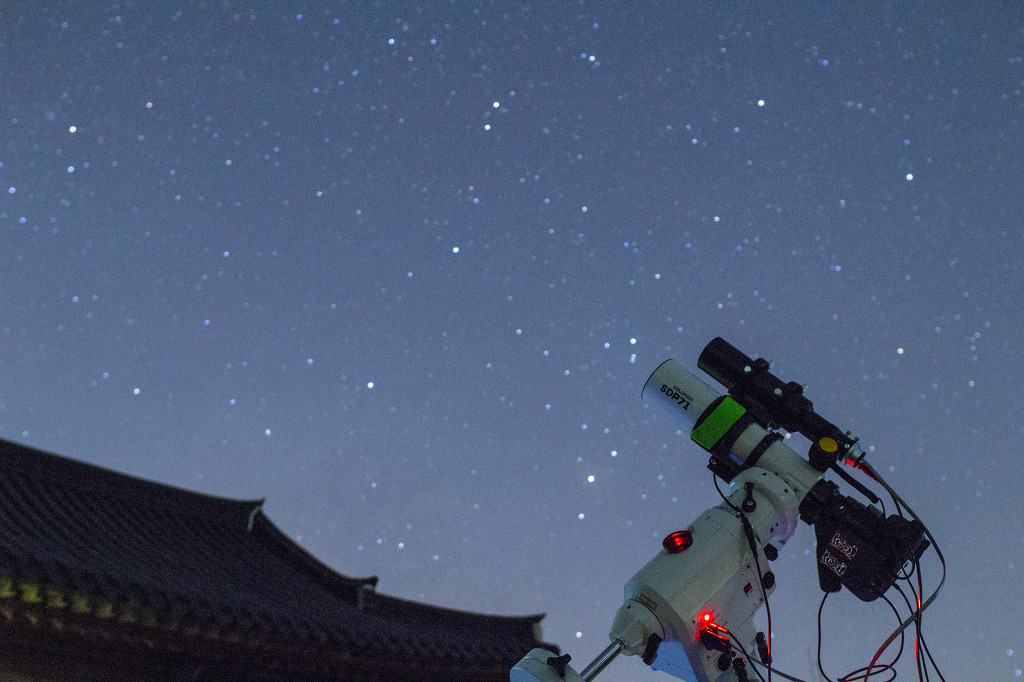 - 촬영 일시 : 2020년 5월 13일 - 촬영 장소 : 화순 유마리 - 망원경 : SDP71 - 가대 : EQ6, QHY5L-2M(PHD2 가이드) - 카메라 : Astro 6D, IDAS HEUIB-II - 촬영 노출 : 180초 ISO x 20장, Flat, Bias 아름다운 직녀님 베가입니다. 거문고자리의 알파별이며 여름의 대삼각형을 이루는 별이기도 하고, 동양에서는 직녀성으로 알려져있는 유명한 별입니다. 또한 별빛이 가장 아름답다고 해도 과언이 아닌 영롱한 청옥빛의 별이지요. 별빛이 아름다운 만큼, 저는 베가를 볼 때마다 직녀님은 얼마나 아름답게 생긴 분이실까 하고 상상을 해보곤 합니다. 정말 얼마나 예쁜 사람일까요. 카메라가 돌아가는 동안, 저는 견우성이 보이지 않는 처마 밑에서 몰래 직녀님께 제 마음을 전해보았는데 과연 어떤 대답을 해주셨을까요. 입대한 지 200일만에 나온 첫 신병휴가에서 건진 사진입니다. 1달 뒤에 곧 상병인데 이런 저런 이유로, 너무 늦게 나와버렸습니다. 월령이 애매한 시기에 나왔지만 첫 휴가에서 사진 한 장이라도 건지고 가서 정말 다행입니다. 그러고 보니 사진 하단에 얻어걸린 더블더블이 팅팅 부어버렸네요. 더블더블은 거문고자리 엡실론 별을 가리키는데 시잉 좋은 날에 높은 배율의 망원경으로 보면 이중성 2개가 한 시야 안에서 분해되는 멋진 대상입니다. 그런데 제 경통은 초점거리가 짧은 탓인지, 시잉이 나쁜 탓인지, 접안부쪽에 틸트 탓인지는 모르겠지만 별 4개가 2개로 부어버렸네요. 이날 관측은 역시나 3기 김형진 선배님과 함께 했습니다. 주중에 피곤하셨을 텐데 흔쾌히 관측지에 데려다주셔서 정말 다시 한번 감사하다는 말씀 드립니다. 정말 언제나, 항상 감사합니다. 정말 별이 보고 싶었고, 관측지의 분위기가 그리웠는데 오랜만에 별다운 별을 보니 좀 살 것 같습니다. 별빛 가득 충전했으니 남은 군생활도 열심히, 그리고 건강하게 해보겠습니다. |