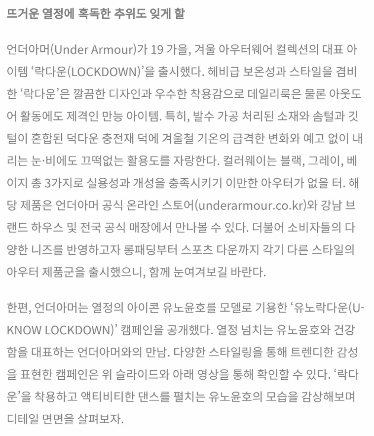 #언더아머 #락다운 #언더아머락다운 #유노락다운 #유노윤호 #패션 #인사이트