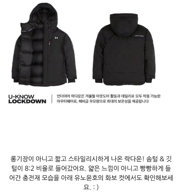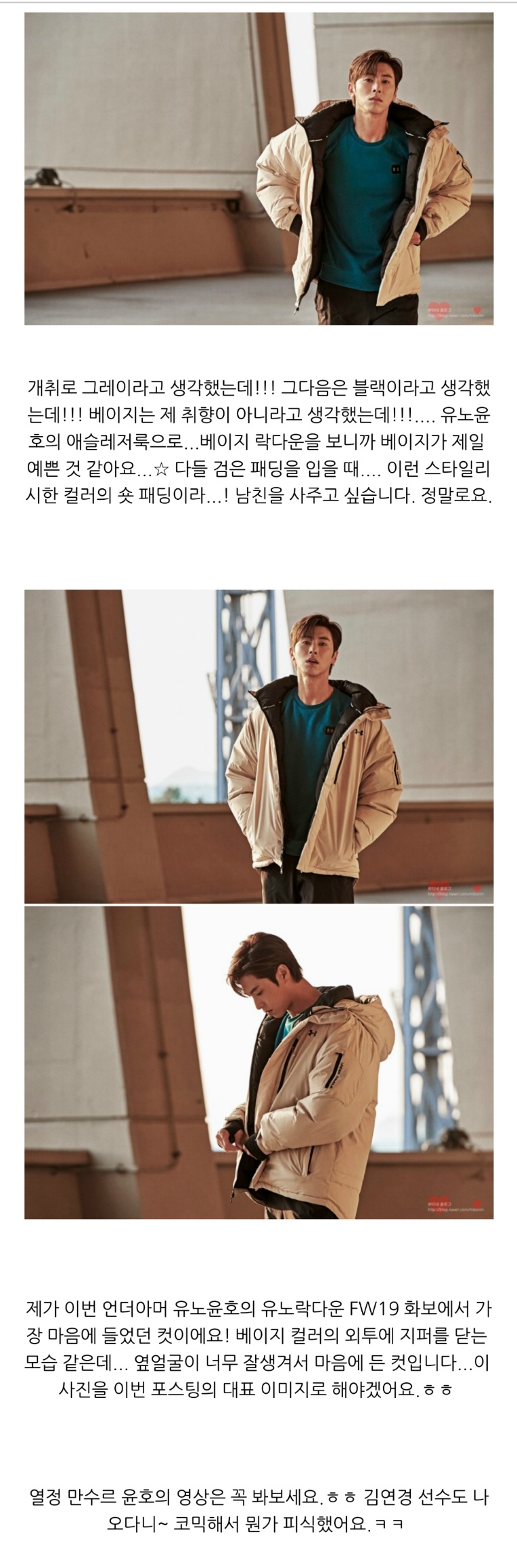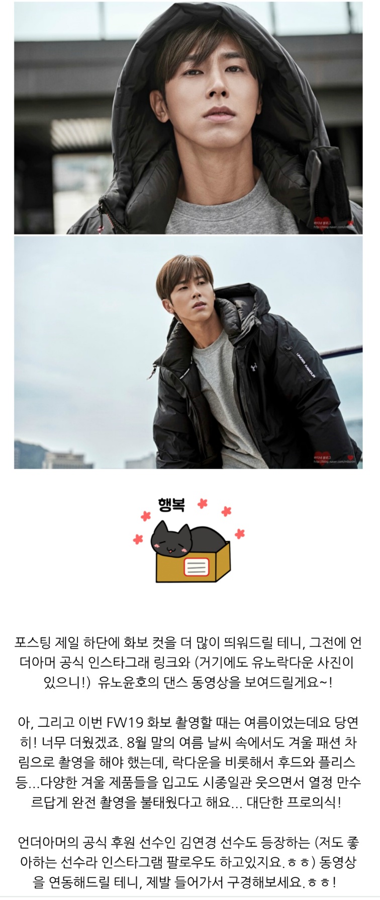 언더아머 유노윤호와 함께한 19 FX 캠페인 유노락다운 패딩 출시