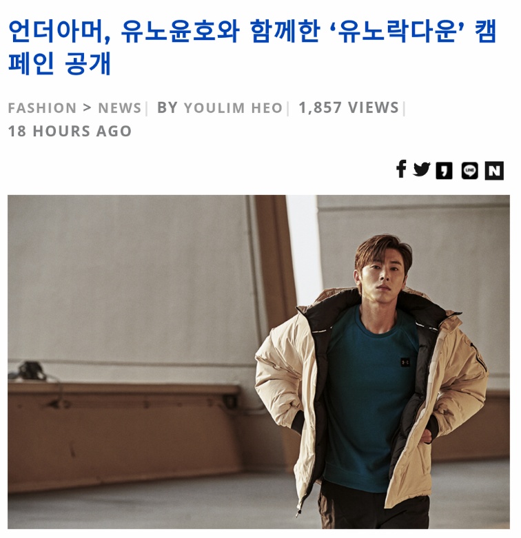 [YH 소식]열정, 성실의 아이콘 유노윤호, 언더아머(Under Armour)올 겨울은 내가 지배한다 U-KNOW LOCKDOWN / 광고모델 랭킹 히트순 1위, 대중들의 관심집중