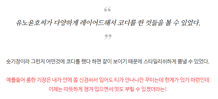 벤치 패딩, 롱 벤치 다운, 스포츠 스타일 다운 등 각기 다른 스타일의 아우터 웨어를 출시했고요.