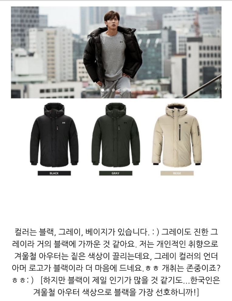 언더아머를 운영하는 언더아머코리아는 지난 19일 다운점퍼를 출시하고 K팝스타