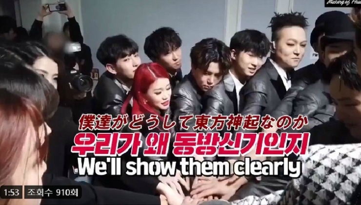 "우리가 왜 동방신기인지 확실히 보여줍시다"라고 말을 합니다.