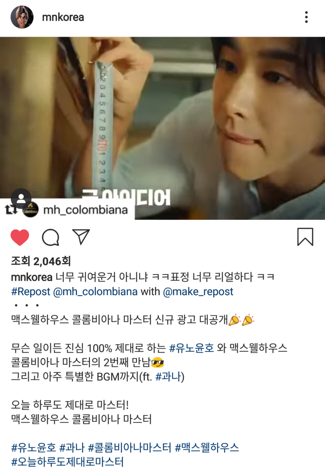 윤호는 콜몸비아 마스터 특급 광고 모델,