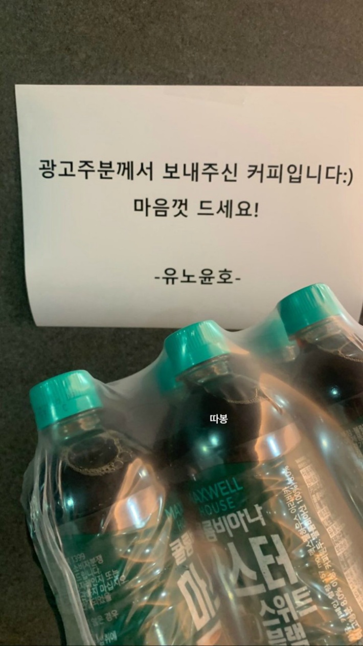 EXO 매니저님 ig story 광고주분께서 보내주신 커피입니다:) 마음껏 드세요! - 유노윤호 -