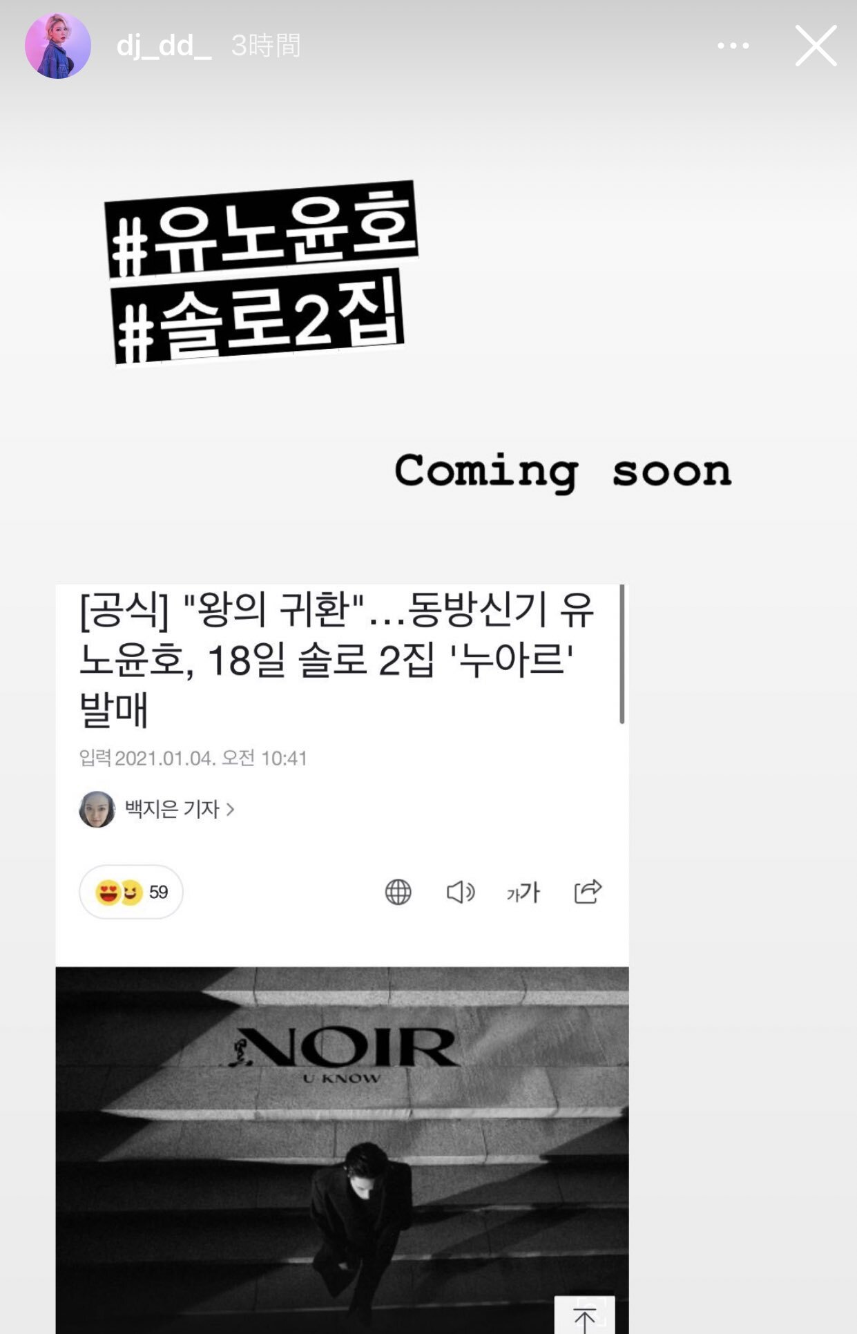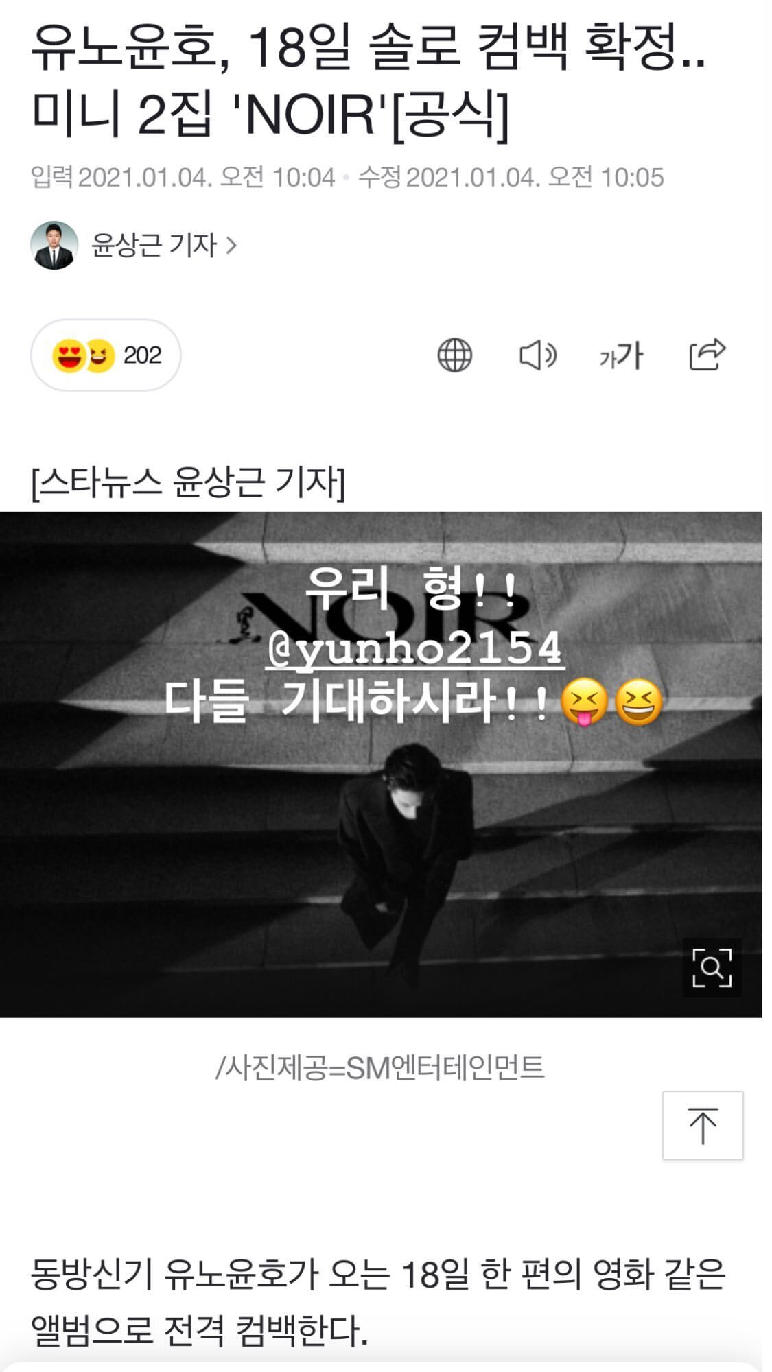 한편, 유노윤호의 두 번째 미니앨범 ‘NOIR’는 1월 18일 음반으로도 발매되며,