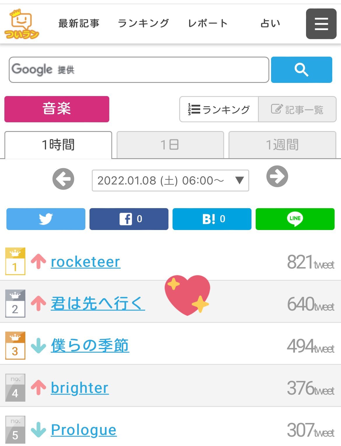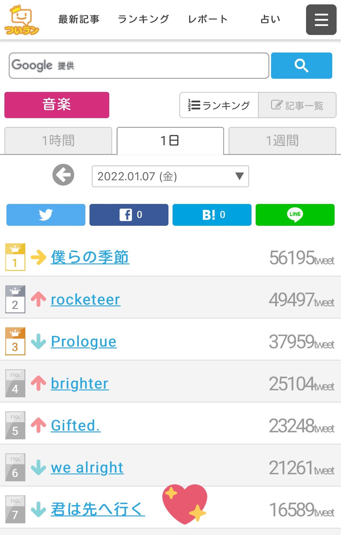 (デイリーまたは24時間)ランキングまとめ