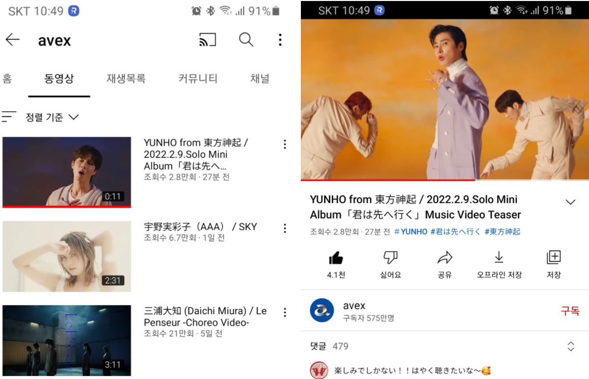 1.6 유노윤호 Solo Mini Album「君は先へ行く」Music Video Teaser +1.8 버즈리듬 엔딩 테마곡