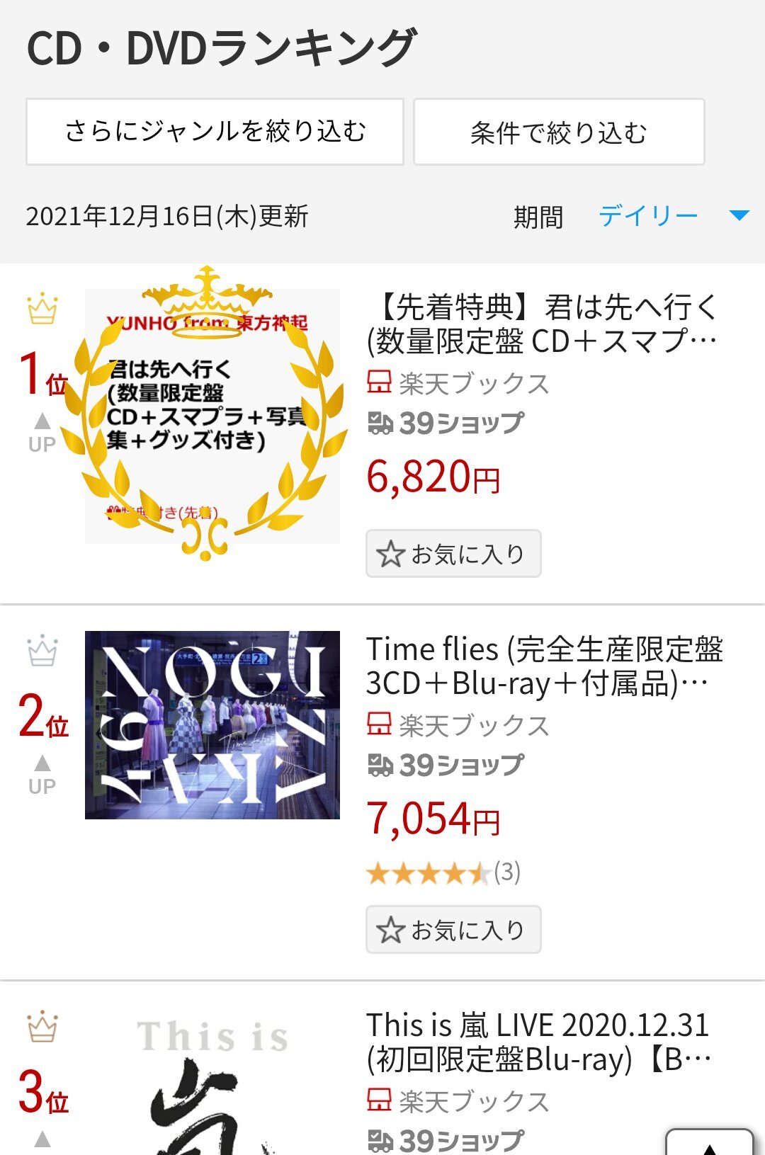 라쿠텐 CD, DVD 랭킹