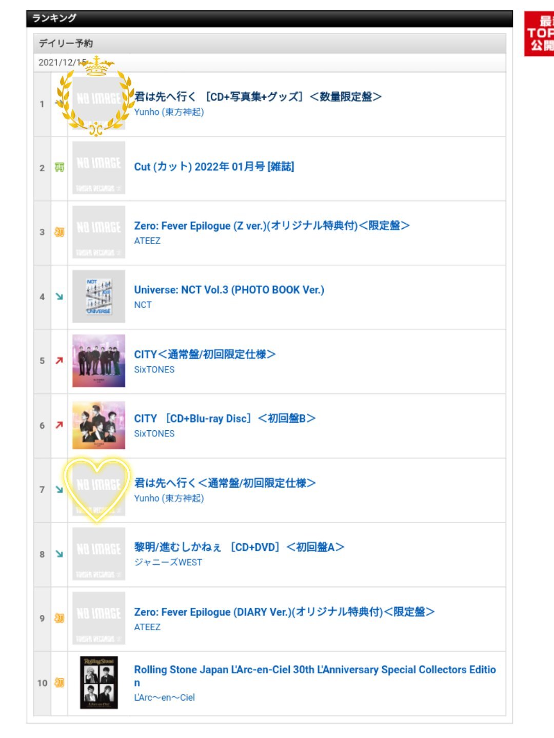 타워레코드 데일리, 1위