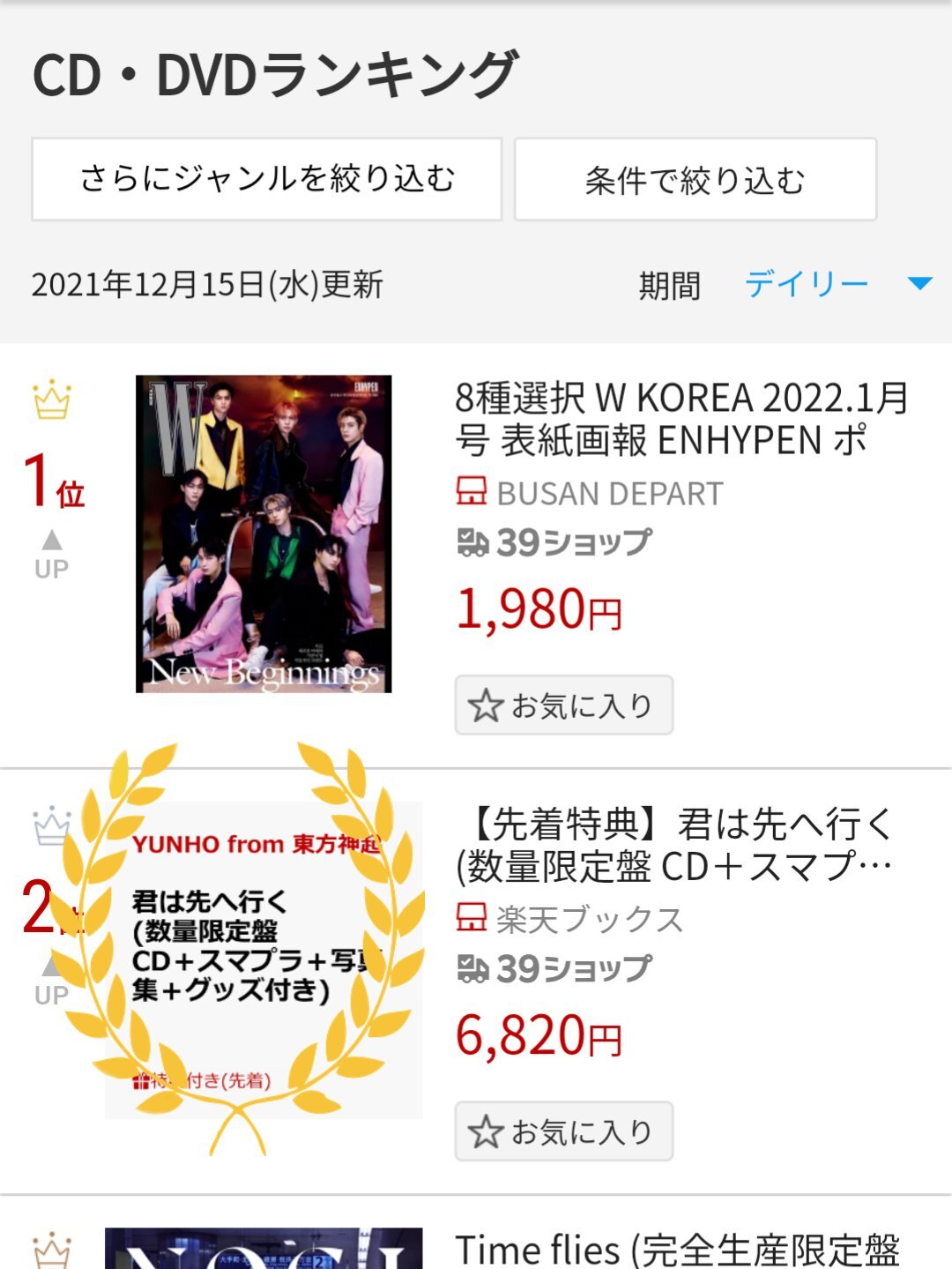 タワレコデイリー、1位 2位