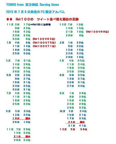 2016年11月30日発表 12月5日付 YUNHO from 東方神起 Burning Down ツイート並べ替え順位⇒38位