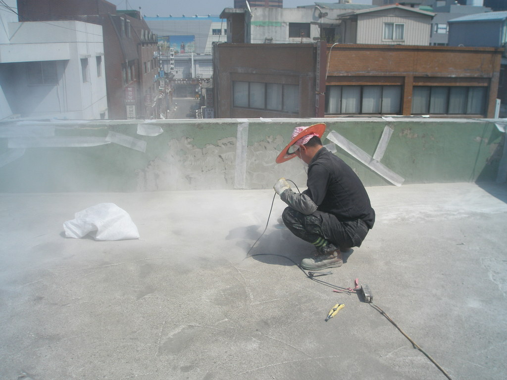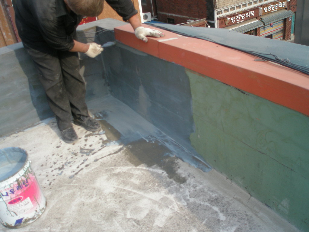 *.옥상은 바닥및 코너부위을 치핑과 면갈리후 크랙부위(빠데), 마감후 도막(모체강화)도포후 에폭시(가격싼것)또는우레탄시공하는