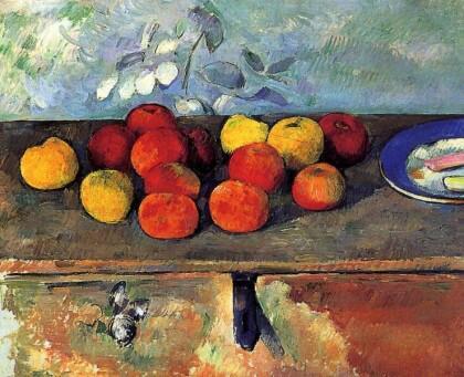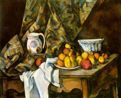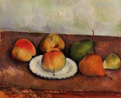 세잔은 자신을 진정한 인상주의 화가로 생각하진 않았지만, 1874년에 인상주의 화가들과 함께 전시회를 가졌다. 그는 자신의 미술이 더 '단단하고 오래도록' 지속되기를 원했다. 오랫동안 플랑드르 미술에 감명을 받았던 세잔은 플랑드르의 대가들이 사용한 것과 유사한 색조로 정물화를 그렸다. 세잔의 정물화 가운데 가장 잘 알려진 작품은 <사과와오렌지>(1895~1900경)이다.