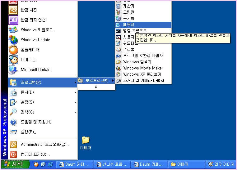 6. 시작-프로그램-보조프로그램에서 <메모장>을 엽니다.