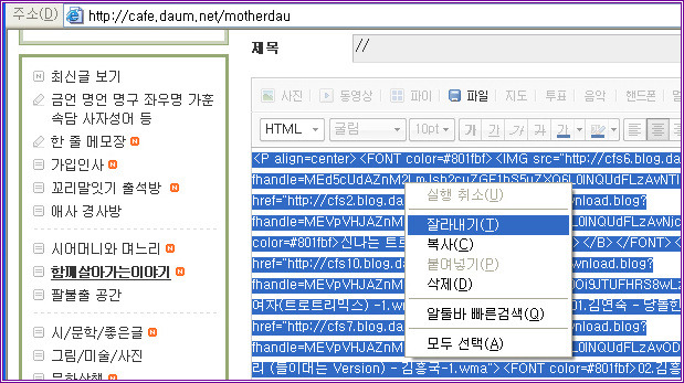 3) 카페 게시판 글쓰기에 붙여넣기 한다.