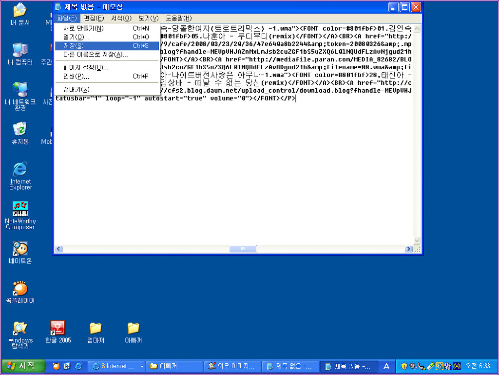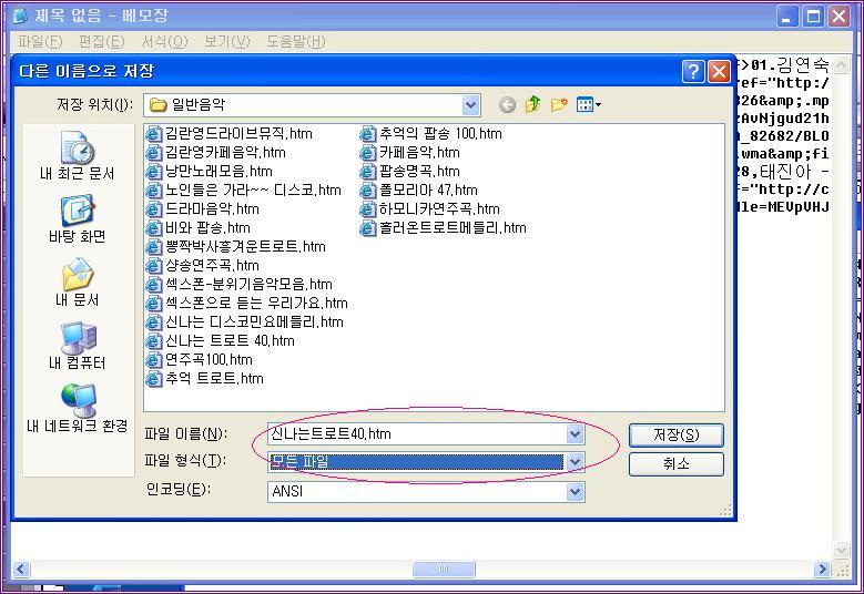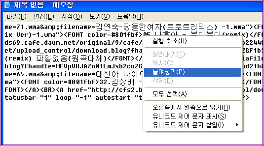 5) 메모장에 붙여넣기 한 후 파일저장한다.