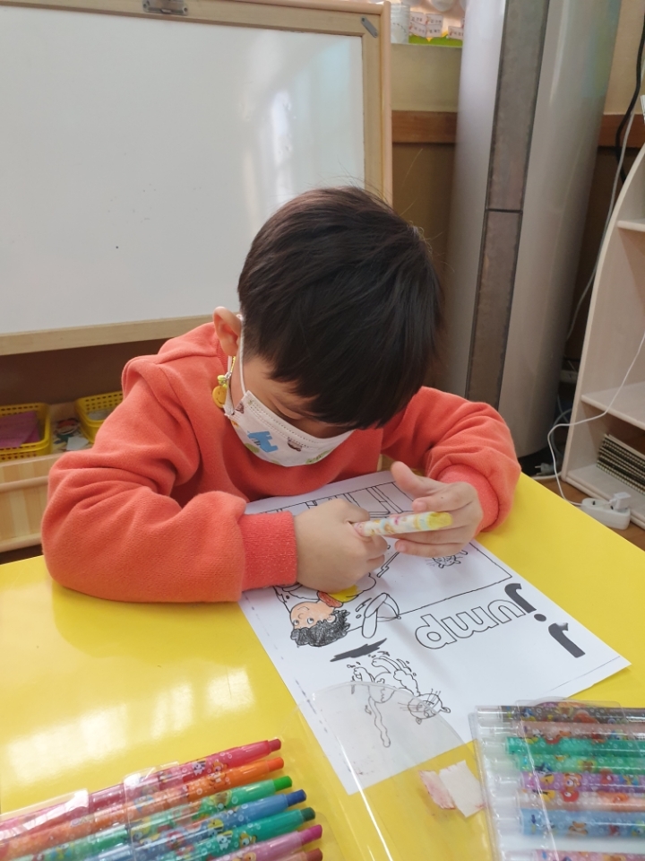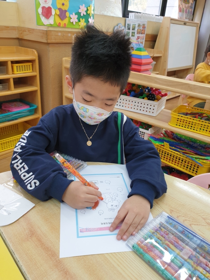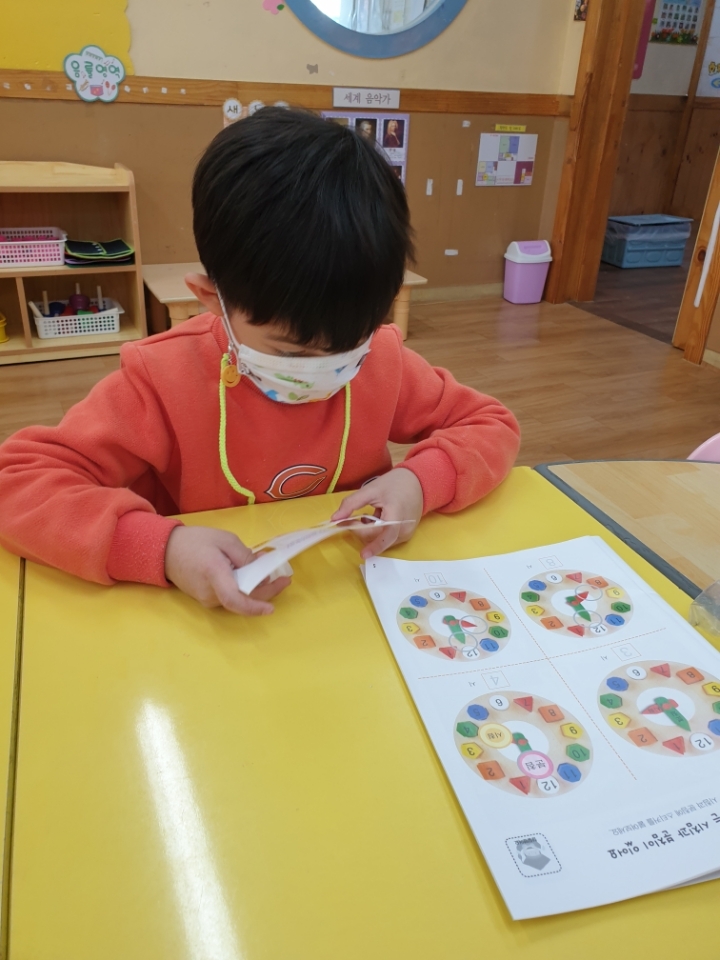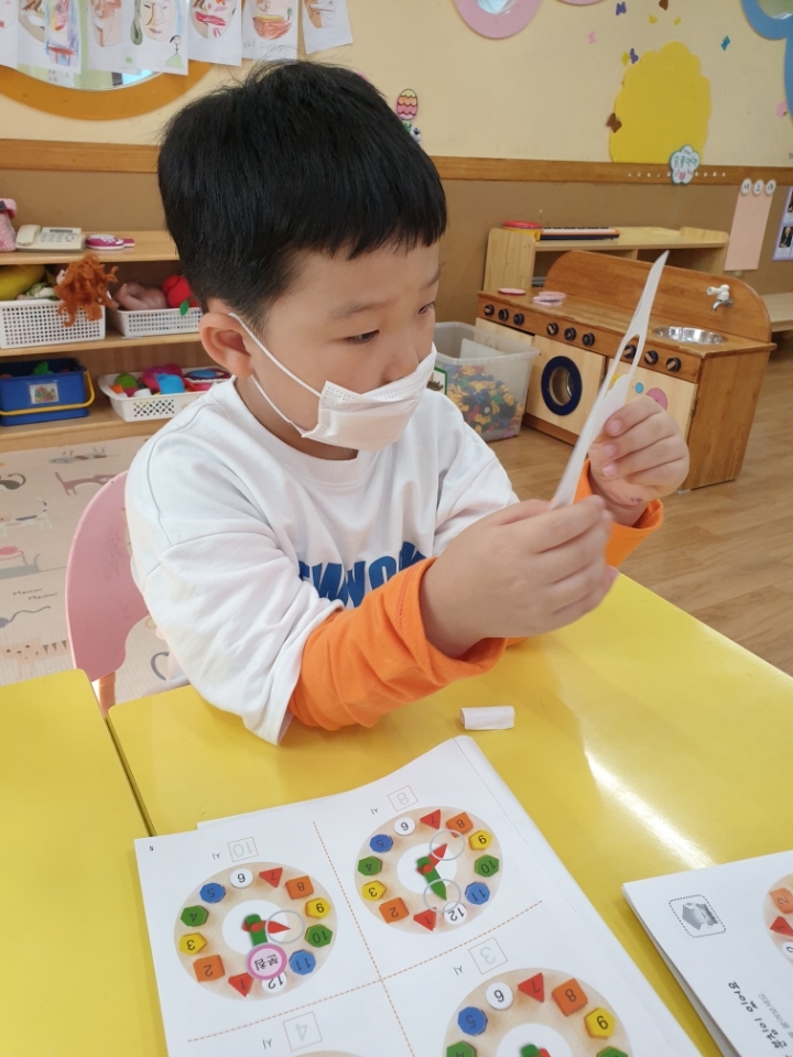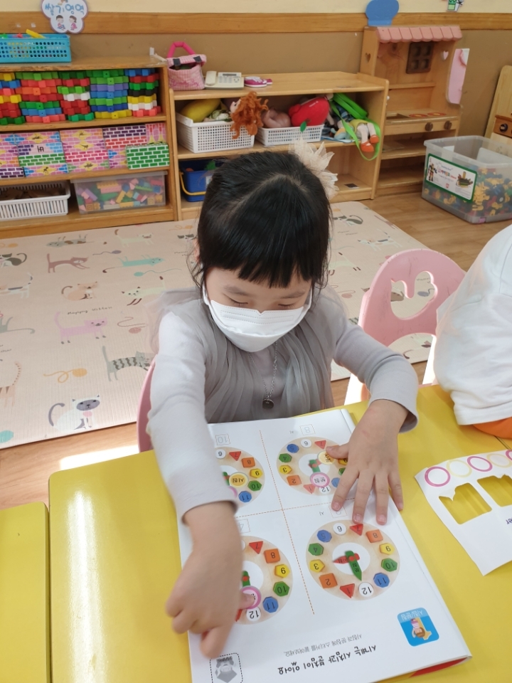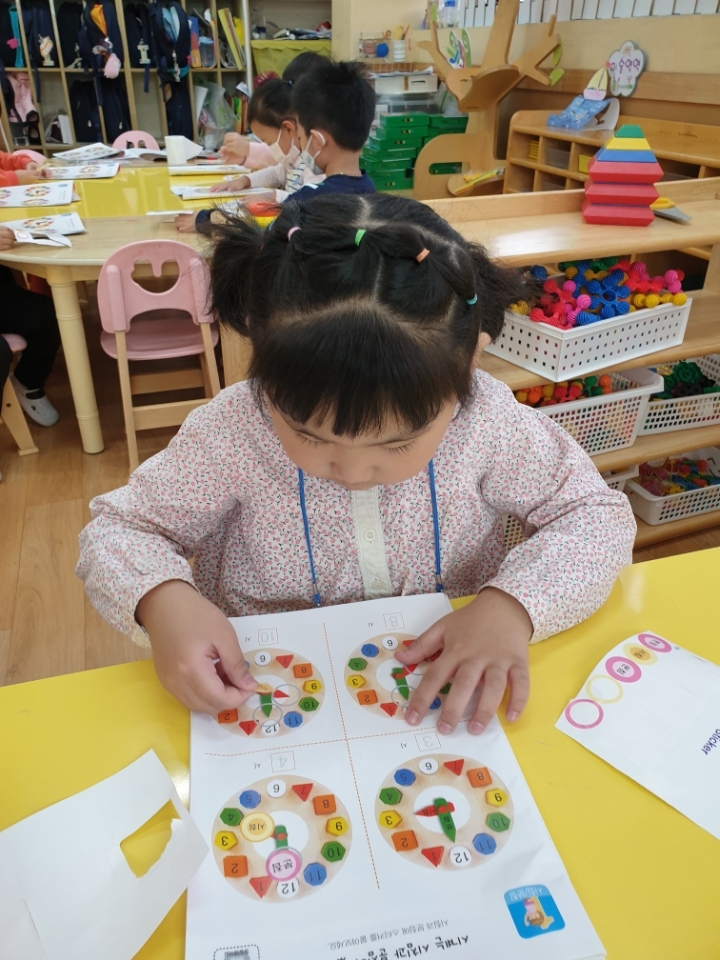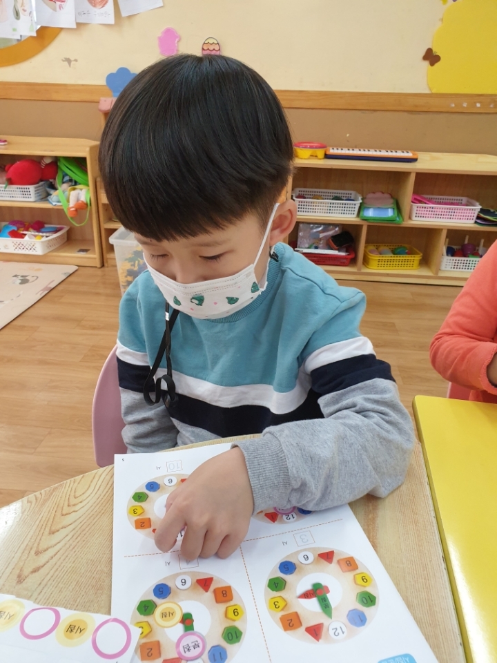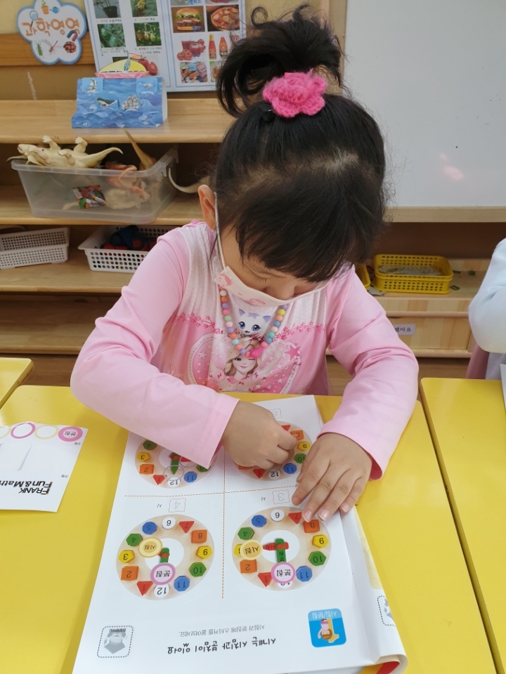 놀이수학 시침과 분침에 대해 알아보고 한글쓰기도 하고 영어 J-j(jump)활동지도 하며 즐겁게 보냈습니다.