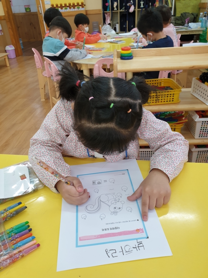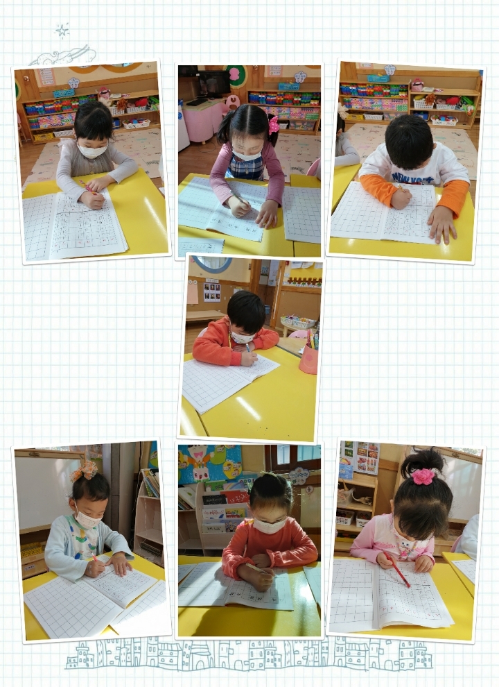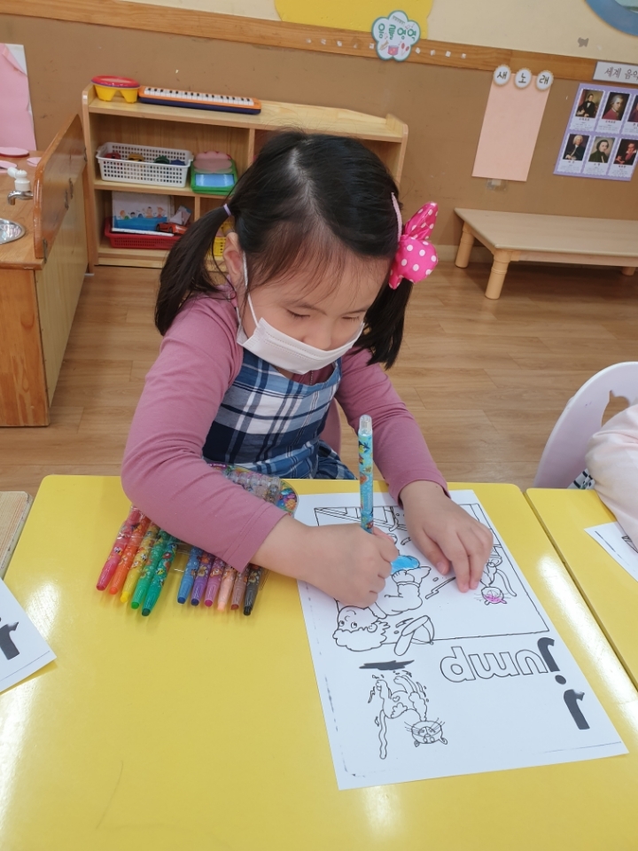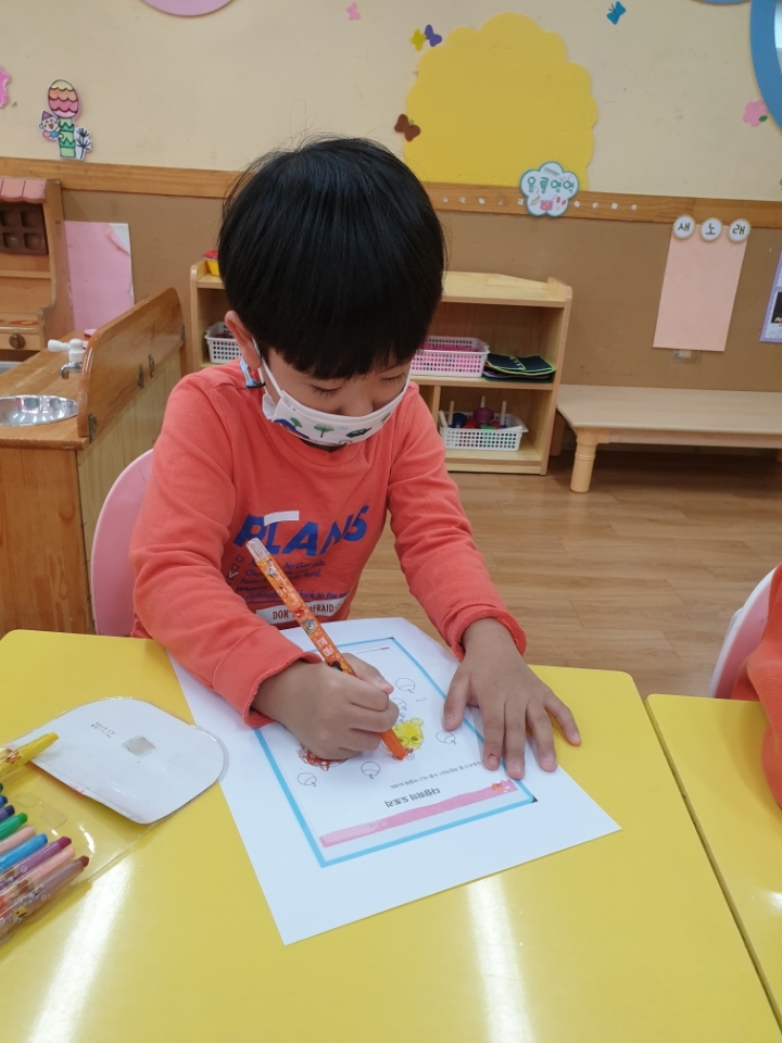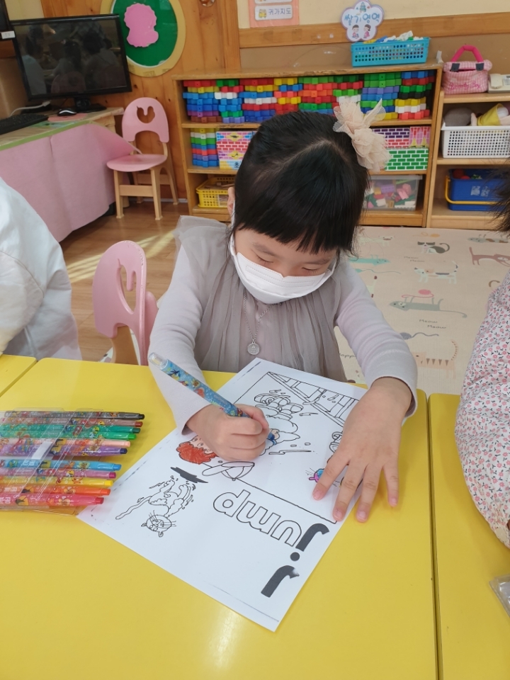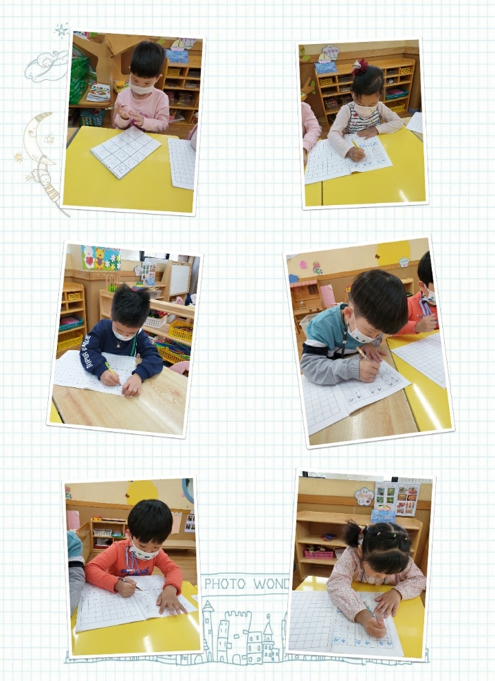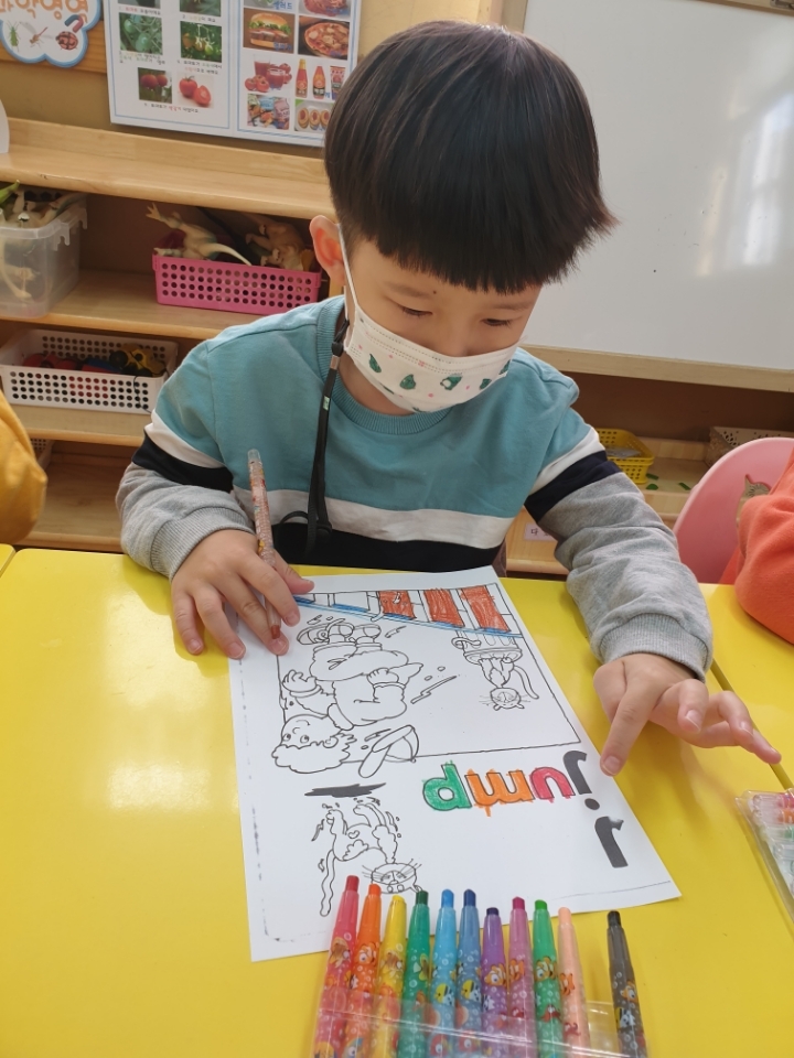 놀이수학 시침과 분침에 대해 알아보고 한글쓰기도 하고 영어 J-j(jump)활동지도 하며 즐겁게 보냈습니다.
