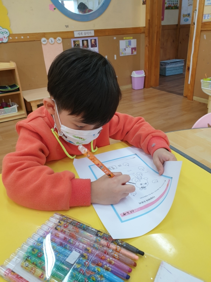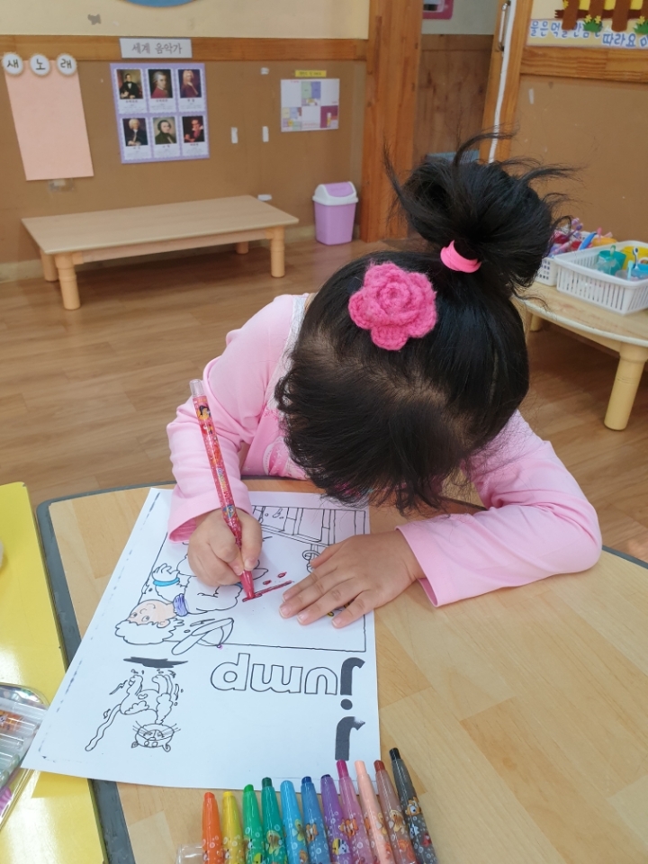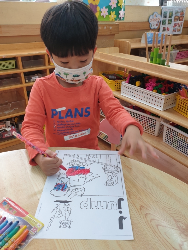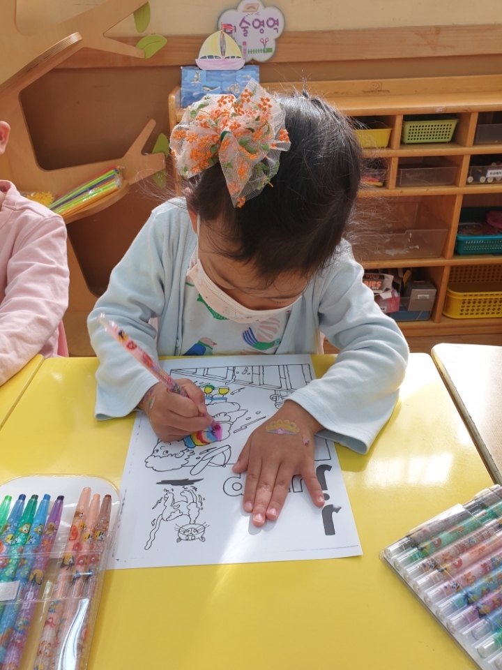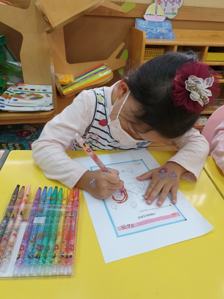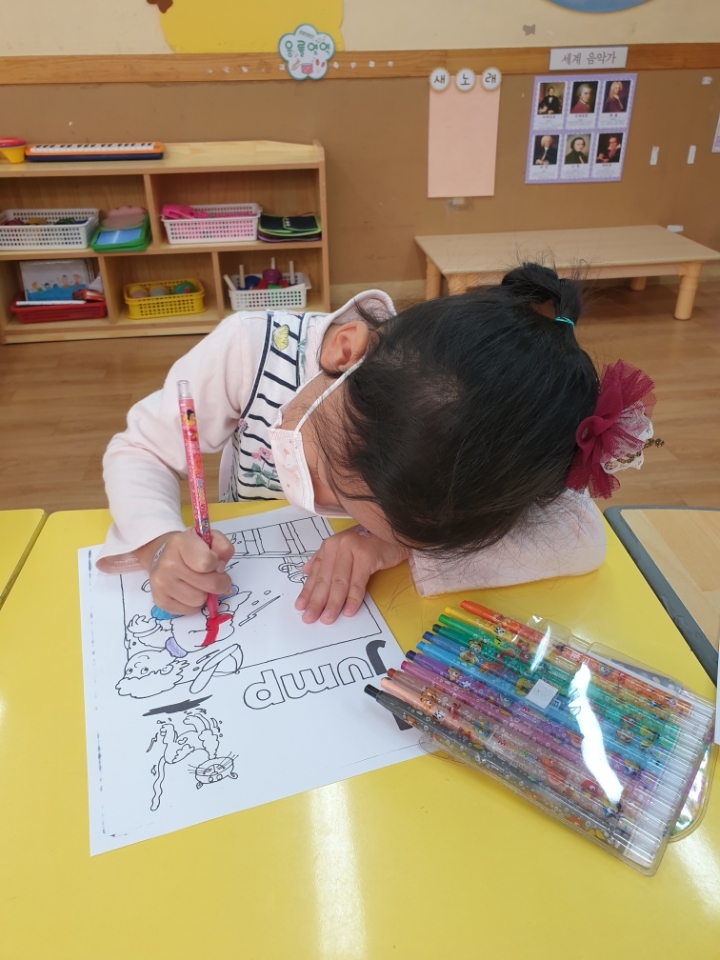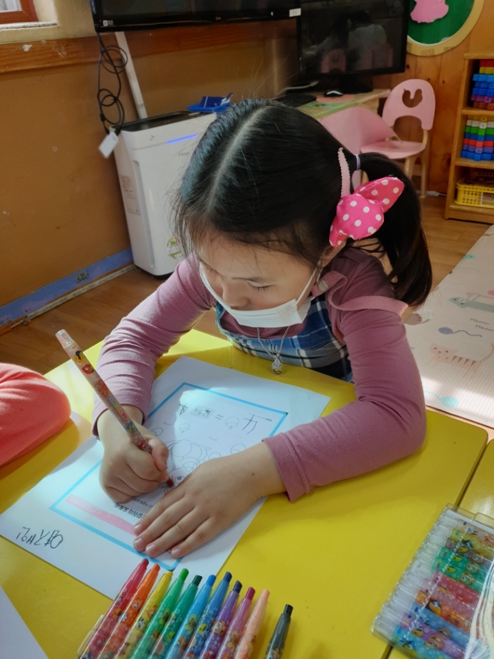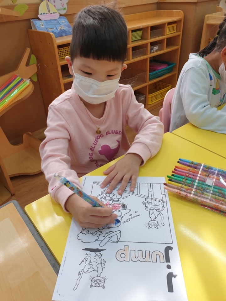 놀이수학 시침과 분침에 대해 알아보고 한글쓰기도 하고 영어 J-j(jump)활동지도 하며 즐겁게 보냈습니다.