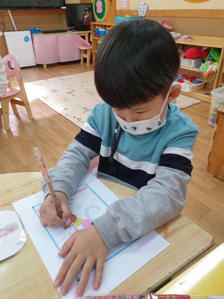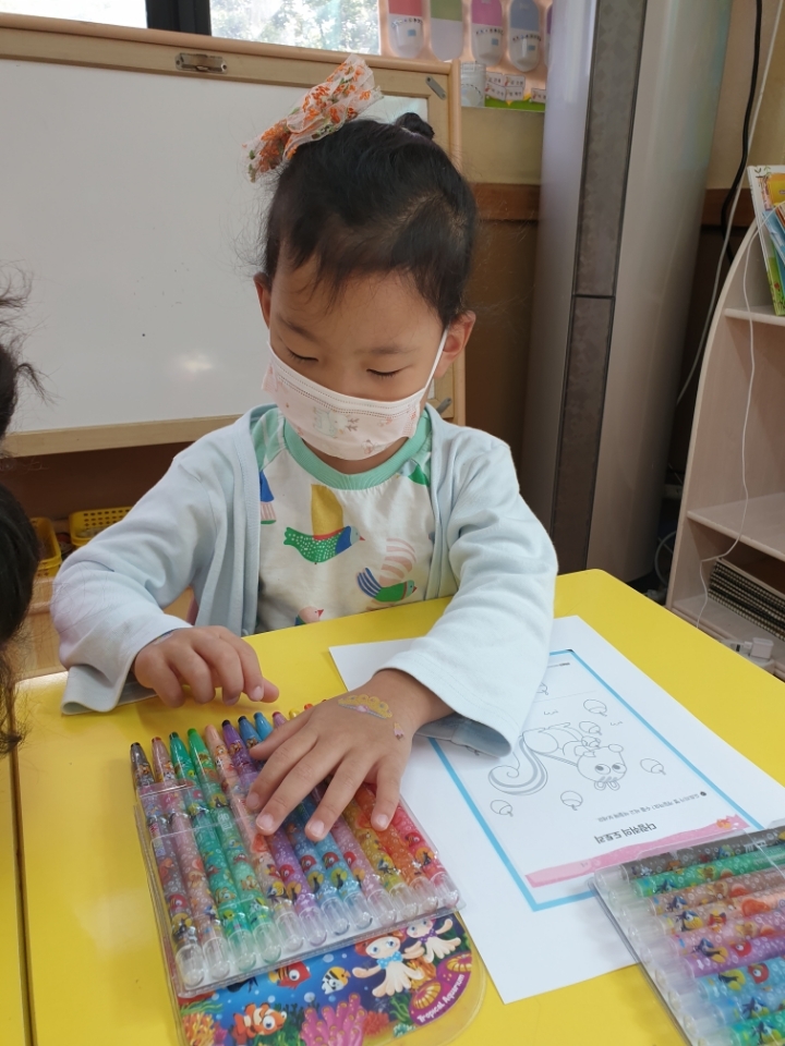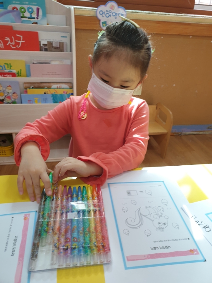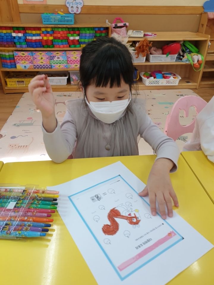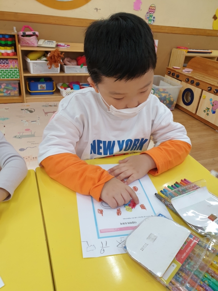 다람쥐와 도토리에 대해 알아보며 도토리 갯수를 세어 적어보고 다람쥐꾸며보기도 했습니다.