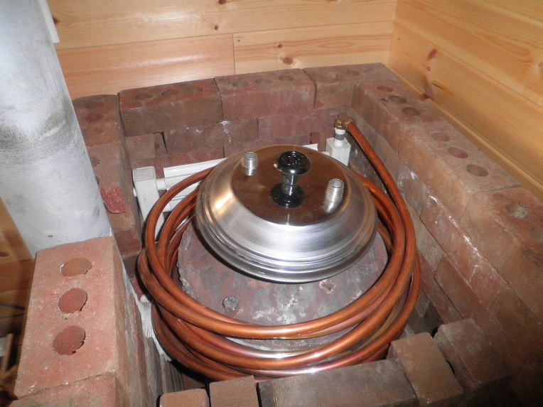 로켓스토브의 바로위의 발열량은 바로 이 연탄뚜겅보일러의 물을 끓이는
