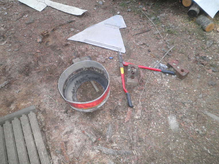 철판을 이것저것 잘라서 난로 본체통의 높이를 높이고 있습니다