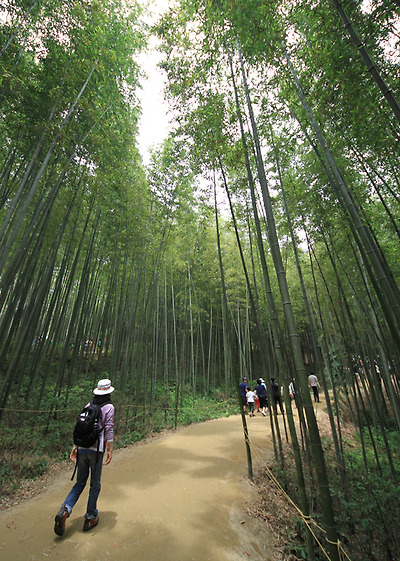 빽빽한 대나무 사이사이에는 8개의 길이 이어진다. 운수대통 길, 철학자의 길, 선비의 길, 사랑이 변치 않는 길 등 모두 약 3km에 이른다. 시간에 여유가 없다면 모두 돌아볼 필요는 없다. 대신 2~3군데만이라도 어깨에 힘을 빼고 편안한 마음으로 어슬렁거리길 권한다. 그렇게 긴장을 모두 버리고 느리게 숲길을 걷다 보면 특유의 맑고 서늘한 기운이 머리까지 스민다. 이는 바깥보다 기온이 3도가량 낮은 까닭이다.