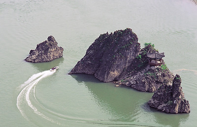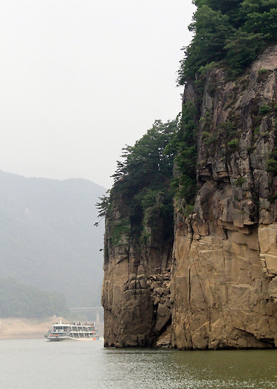 배를 타고 십여 분을 더 거슬러 올라가자 이번에는 희고 푸른 바위들이 대나무순 모양으로 치솟은 옥순봉이 모습을 드러낸다. 쪽빛 봉우리와 옥색의 물빛이 맞닿은 풍경이 산수화를 이어 붙인 듯 경이롭다.