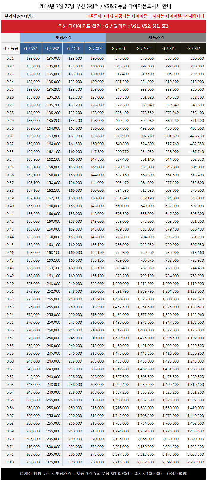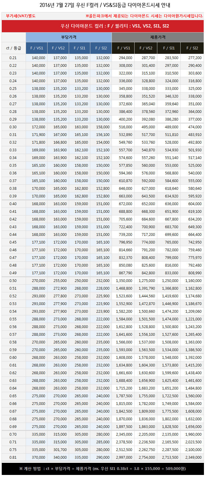 2016년 7월 27일 오늘 다이아몬드 시세 안내 (우신다이아몬드, 현대다이아몬드, 국제다이아몬드 등) |