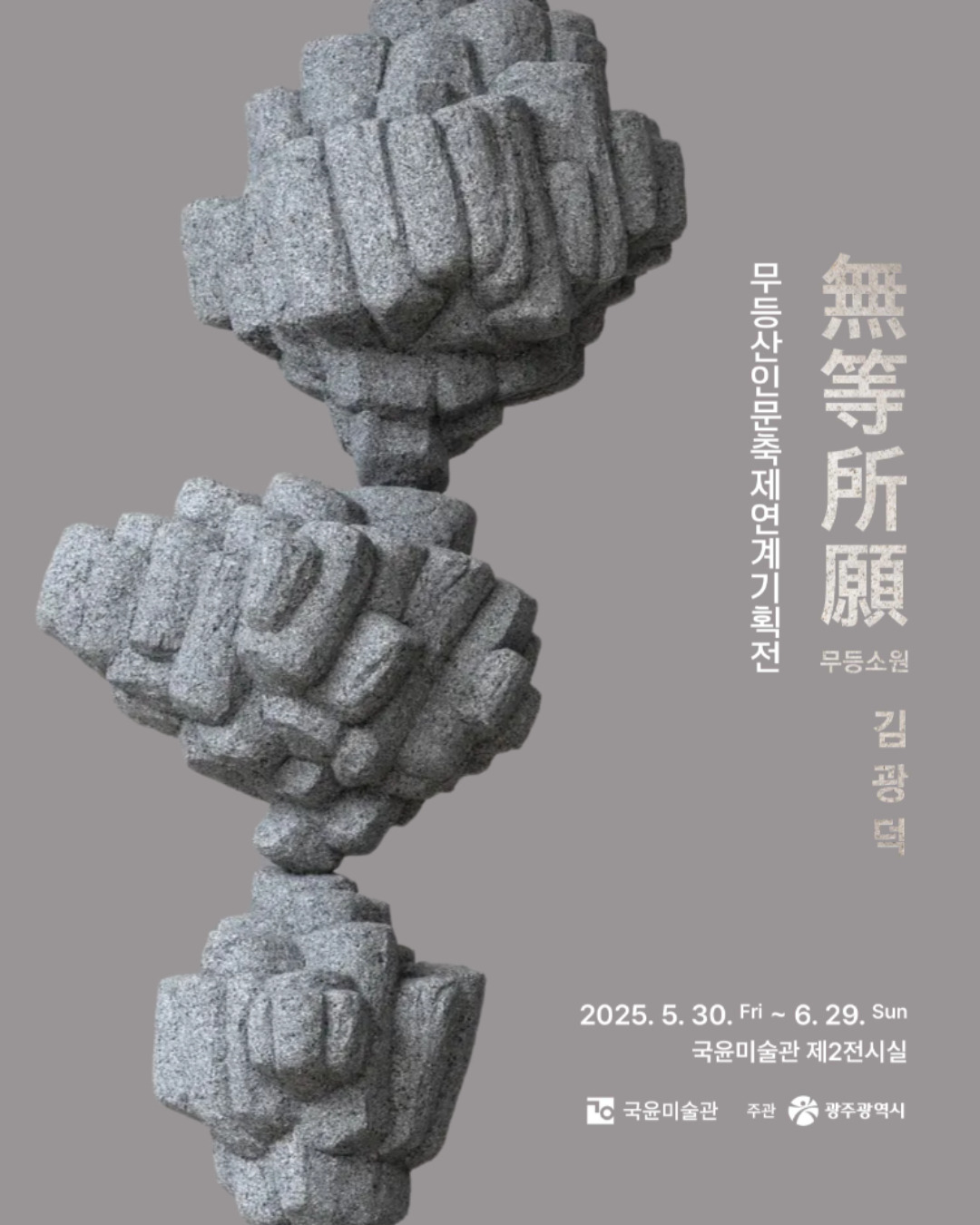 내용 : 『무등소원』展은 무등산인문축제와 연계하여 조각가 김광덕의 참여로 기획되었으며, 무등산의 주상절리를 모티브로 한 입체 조형 작품들을 통해 평등과 소망의 의미를 전한다. 폐자재 등 혼합재료로 제작된 그의 조형물은 산조의 장단과 흐름에서 영감을 받아 불규칙 속 조화를 이루며, 관람객이 직접 소원 돌탑 쌓기에 참여함으로써 전시와 예술의 경계를 허물고 몰입적 예술 경험을 가능하게 한다. ‘쌓는다’는 수행적 행위를 통해 작가는 조형과 정서, 공간의 관계를 탐구하며, 관람객이 작품의 일부가 되어 스스로를 성찰하는 계기를 마련하고자 한다.