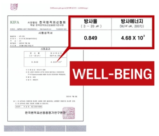 한국원적외선 협회로부터 원적외선 방출시험을 완료.