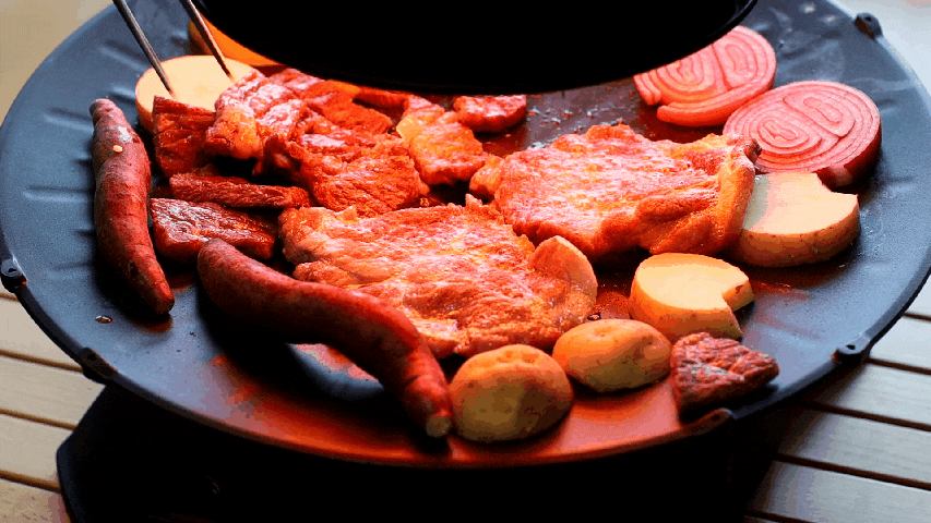 자이글 슈퍼로 지글지글 소고기에 삼겹살에 고구마, 감자, 있는대로 다 갖다 구워 먹을라치면,