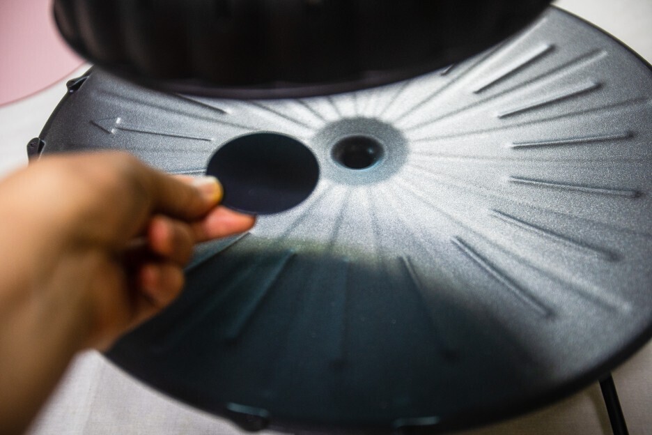 볶음용 팬커버를 원형팬 가운데에 끼워 구멍을 막으면,