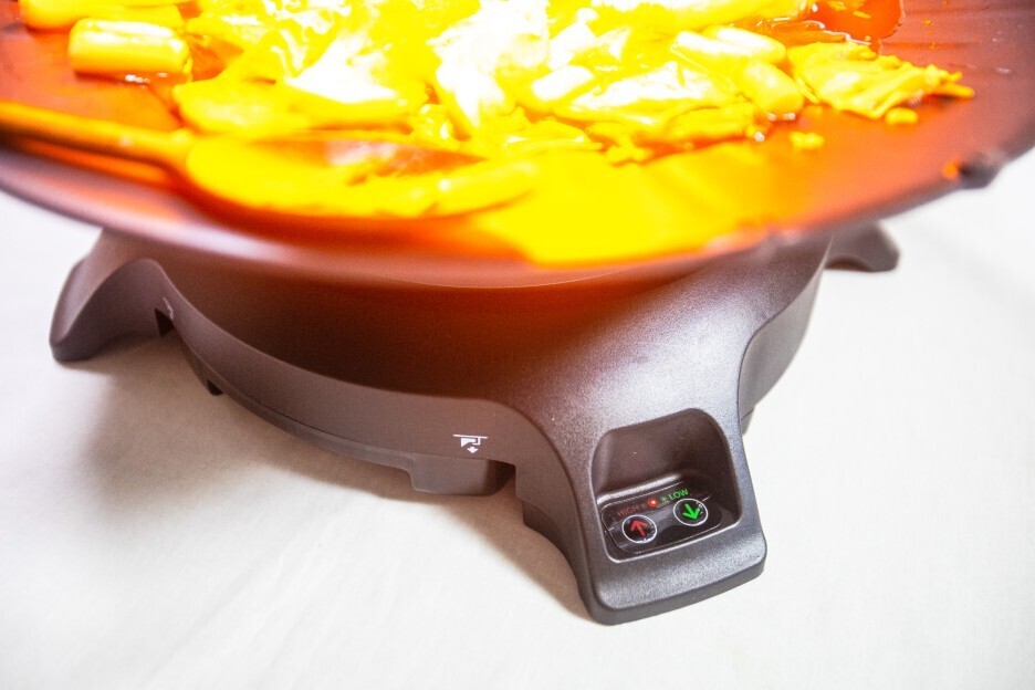 좀 더 빠른 조리를 원할 땐, 원형팬을 위로 올려 적외선 램프 헤드에 가깝게 하고,