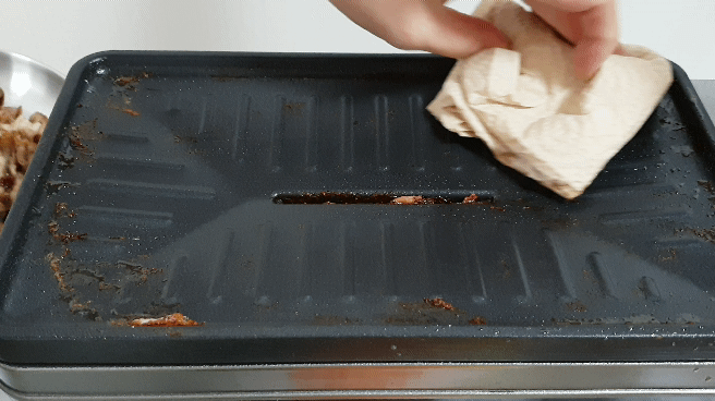 훈제오리를 먹고나면 불판이 엄청 지저분해 지는데 불판 코팅이 좋아서 키친타올로만 닦아줘도 깨끗해져서 좋아요