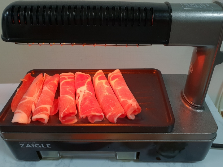 위아래에서 동시에 골고루 익혀주기 때문에 맛있고 촉촉 담백한 삼겹살을 먹을 수 있어요