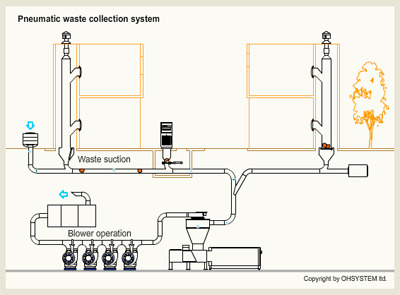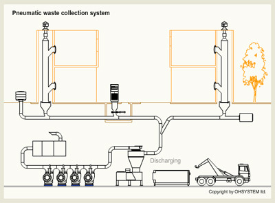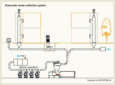 [ 2단계 : 밀폐된 관로를 통해 고속 공기로 집하장까지 자동 이송 ]