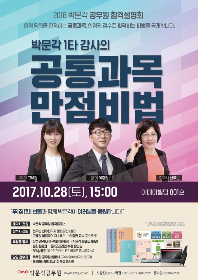 [박문각] 설명회 공지 작성자기주조교|작성시간17.10.24|조회수507 목록 댓글 1 글자크기 작게가 글자크기 크게가 http://www.pmg.co.kr/user/pna/event/event_171016.asp 첨부파일첨부된 파일이 2개 있습니다. jpg 파일 KakaoTalk_20171023_145051912.jpg 다운로드 jpg 파일 KakaoTalk_20171023_145051912.jpg 다운로드 다음검색 현재 게시글 추가 기능 열기 북마크 공유하기 신고 센터로 신고 댓글 댓글 1 댓글쓰기 답글쓰기 댓글 리스트 작성자살충제 | 작성시간 18.06.24 박문각! 댓글 전체보기