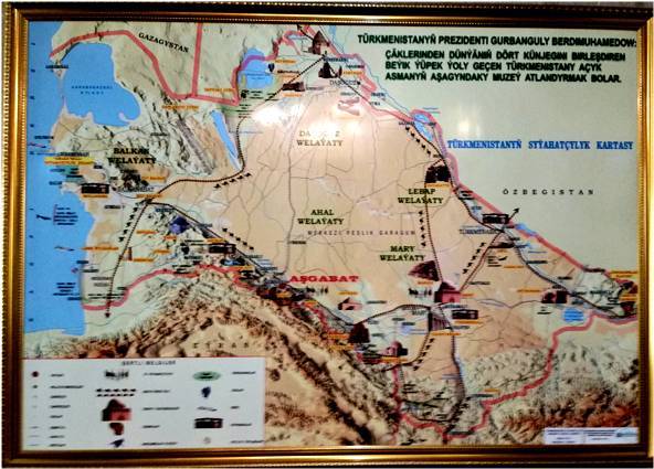 대통령직선제 , 임기는 종신제, 영구적인 세계중립국 선언, 사막위에 물과 분수천지, 국민들은 전기세,물세, 가스비, 차량연료 모두가 공짜이고 뭐하나 부족함이 없어 보이는 국가입니다 ( 풍부한 석유와 한국이 100년간 사용할수 있는 가스가 매장) 평양보다 더해 보이는 대통령의 막강한 권한 (진시황제격??)