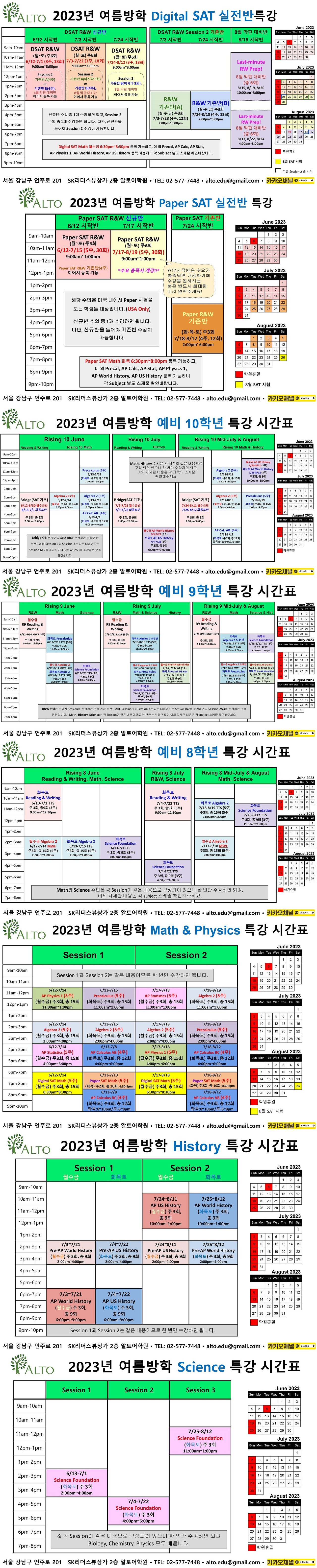 | 안녕하세요. 우’s 한미르 학원 원장 이태룡입니다. 강남구 도곡동에 위치한 알토 어학원에 대해 소개해 드리며 제가 알토 어학원에서 현재 강의하는 과목 ( IGCSE 대비 수학 과학 Bridge 과목 ) 과 미국인 원장 선생님들이 강의하는 영어 강좌를 소개하고자 글을 남깁니다. 알토 어학원 2023년 여름방학 특강 등록 및 2023년 봄 가을 정규 강의 등록 문의 ( 02 - 577 - 7448 ) (alto.edu@gmail.com) 알토 어학원은 강남 세브란스에서 매봉터널을 빠져나와 우회전하면 보이는 도곡동 SK 리더스뷰상가 2층에 위치하고 있습니다. ( https://www.google.com/maps/place/%EC%95%8C%ED%86%A0%EC%96%B4%ED%95%99%EC%9B%90/data=!4m14!1m7!3m6!1s0x357ca6af034d0455:0x82c4b04a4045c976!2z7JWM7Yag7Ja07ZWZ7JuQ!8m2!3d37.4884099!4d127.0487094!16s%2Fg%2F1q5ccv7ny!3m5!1s0x357ca6af034d0455:0x82c4b04a4045c976!8m2!3d37.4884099!4d127.0487094!16s%2Fg%2F1q5ccv7ny?hl=ko ) 제가 겨울방학특강을 비롯하여 학기 중 주중 주말 강의를 알토에서 진행하고 있습니다, 학원에 대해서 잠시 말씀 드리겠습니다. 교실을 꽉 채운 학생들이 미국 원장선생님 영어 수업을 열심히 듣고 있습니다. 미국 원장 선생님 세분 + 원어민 세분 이 10여년 이상 간판 하나 걸지 않고 소개에 소개를 통해 이렇게 많은 학생들을 모집하고 강의하고 운영을 할 수 있는 이유는 학생들의 좋은 환경에서 학습하고 우수한 결과를 내기 때문입니다. 알토 어학원의 미국 원장선생님들은 영어 및 SAT Reading Writing 전문으로 강의를 하시어 국내 외 국제학교 재학생들 영어 수준과 목표에 맞는 수준 높은 강의가 진행되며, 원장님들을 도와주는 많은 TA 들과 행정인력들이 학사 관리, 학원 행정과 경영을 전담합니다. 또한 학생 중심 운영으로 모든 강좌가 학원내에서 그리고 온라인으로 동시 진행됩니다. 그래서, 이동이 잦은 학생들은 공부에만 전념할 수 있습니다. 국제 학교 학생이 원하는 것 국제 학교 학생이 편하게 공부할 수 있는 독창적인 수업 계획 국제 학교 학생이 그 계획에 따라 공부 했을 때 그 성과가 미국 원장선생님들의 알토 어학원 운영의 원칙이라 생각됩니다. 이 소개글을 쓰는 저도 어학원에서 주중 주말 강의를 하고 있습니다. 미국 원장선생님들의 학생에 대한 세심한 배려가 느낀 경우가 있습니다. 이것이 단지 마음만으로 되는 것이 아니라, 학원 시설과 기술 지원까지 십 수년간의 운영 경험에서 가능한 점입니다. 이 글을 읽으시고 자녀분들의 영어 및 수학 과학 교육에 참고해 주시면 감사하겠습니다. —————————————————————————————————————————————————— [알토] ♡2023 여름 방학 특강 등록 시작되었습니다♡ [Web발신] ▶여름 특강 전체 스케줄: https://bit.ly/3xhFDEH ▶Digital SAT R/W 실전 신규반 & 기존반 ◇강사: Mr. Foster, Mr. Reznick ◇상세 스케줄: https://bit.ly/3HP198o ▶Paper SAT R/W 실전 신규반 & 기존반 ◇강사: Mr. Foster, Mr. Reznick ◇상세 스케줄: https://bit.ly/3YCGDyO ▶예비 10th Bridge(SAT R/W기초)반 ◇강사: Mr. Richardson, Mr. LeBlanc ◇상세 스케줄: https://bit.ly/3Xlw0iQ ▶예비 9th R/W반 ◇강사: Mr. Richardson, Mr. LeBlanc ◇상세 스케줄: https://bit.ly/3HZuEEV ▶예비 8th R/W반 ◇강사: Mr. Richardson, Mr. LeBlanc ◇상세 스케줄: https://bit.ly/3YNxvr2 ▶History 특강반(World History, US History) ◇강사: Mr. Webster ◇상세 스케줄: https://bit.ly/3RRHs4E ▶Math & Physics 1 특강반 ◇강사: Justin Wang 선생님 ◇상세 스케줄: https://bit.ly/40LK9ZH ▶Science Foundation 특강반 ◇강사: 이태룡 선생님 ◇대상: 예비8, 예비9학년 ◇상세 스케줄: https://bit.ly/3E5Vt9g (※해당 수업만 예외로 한국어로 강의하며 과학용어는 영어로 진행) ◑ 모든 반은 모두 대면, 비대면 수업 가능합니다. ◑ 표기된 모든 날짜와 시간은 한국 시간 기준(KST)입니다. ◑ 예비 10학년 (또는 현재 고1) 학부모님들 중 여름 특강 Bridge(예비 10학년 전용 SAT 기초)반이 아닌 SAT 실전반을 등록하시려면 레벨 테스트를 통해 상담 도와드리겠습니다. ◑ 모든 반은 등록기준 선착순 마감입니다. 감사합니다. |