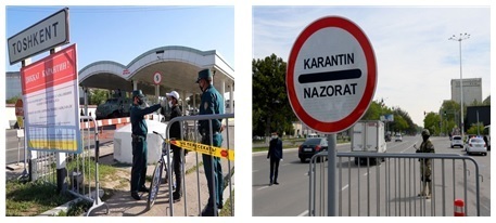 2020년 3월 15일 우즈베키스탄에서 최초로 코로나19 확진자가 발생한 이후, 우즈베키스탄 정부는 초기부터 상당히 강도가 높은 제한조치들을 연달아 시행하였다. 3월 16일부터는 공립·사립학교가 휴교하였으며 22일부터는 대중교통 운행 일시중단, 23일 마스크 착용 의무화 등이 순차적으로 진행되었다.
