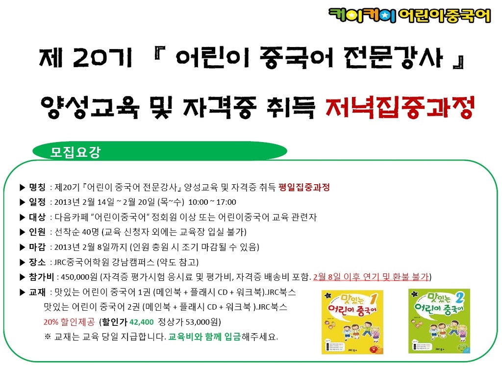 커이커이 어린이 중국어 전문강사 양성과정 교육에 많은 참여 부탁드립니다~~ ^^