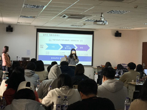 프로그램은 오전과 오후로 나누어 진했되었으며, 오전에는 유학생들에게 취업에 대한 정보를 주기 위한 특강이 이루어졌습니다. ‘주중대한민국대사관’에서는 “중국 취업동향 및 외국인취업허가” 라는 주제로, 해외취업지원제도와 국내 취업지원제도에 관하여 유학생들이 알아두면 유익한 지원제도에 대한 내용의 강연이 이어졌습니다. ‘주홍콩대한민국총영사관’은 “홍콩의 고용시장과 공관의 취업지원”을 주제로, 홍콩총영사관의 해외취업지원 사업에 대해 소개하였습니다. 다음으로 ‘FESCO Adecco(중국 인력자원 국유기업인 FESCO와 글로벌 인력자원서비스 전문기업인 Adecco의 Joint Venture를 통해 설립한 합자법인)’에서는 “이력서작성법”에 대하여 취업 이력서뿐만 아니라 다양한 지원서에 꼭 필요한 내용을 다루어 유학생들에게 유용한 정보를 제공하는 시간을 가졌습니다.