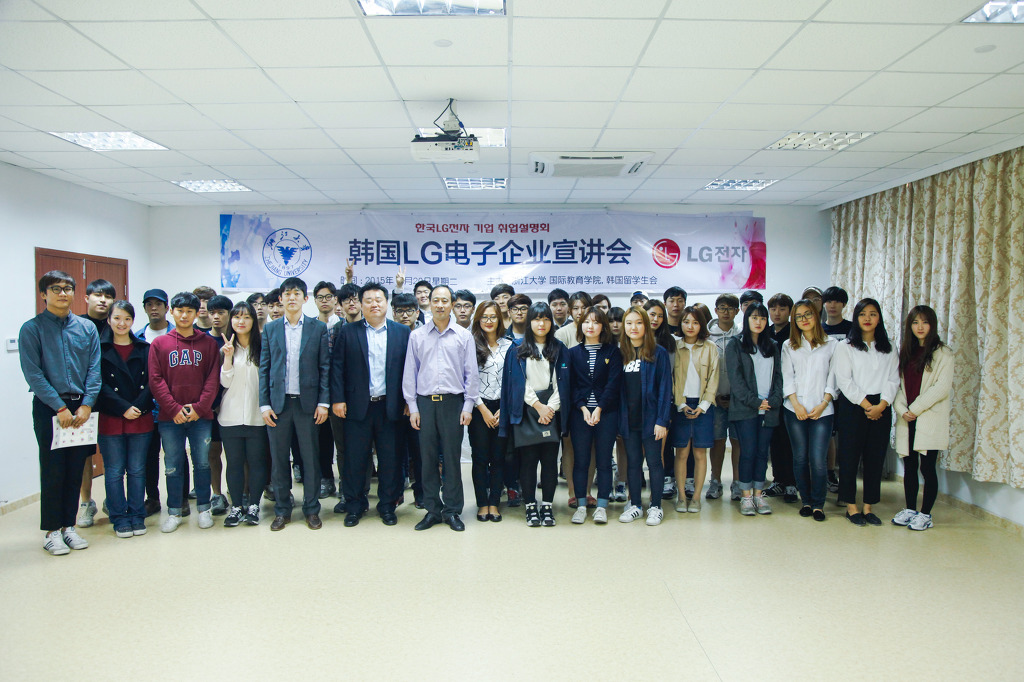 LG전자 본사 HR팀 이원진 차장님과 전현재 사원께서 직접 방문해 주셨으며, 국제교육학원 徐为民부원장님, 陈南非교수님 및 80여명의 한국 유학생이 행사에 참석하였습니다.