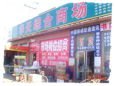학교 앞에 있는 작은 수퍼인데요. 그냥 옛날 기억이 나서 한 장 찍어왔습니다. 중국에 처음 온 다음날 이 곳에서 콜라 하나를 사고 10元짜리를 냈는데 여기 주인이 카운터 위로 잔돈은 툭 던지는 것입니다. 혼자 손을 부들 부들 떨며 친구들에게 '저 놈을 없애버리겠다'고 난리부르스를 치곤 했는데.... 중국상인들 원래 그렇다는 거 발견하는데 오래 걸리진 않았습니다. 시간이 많이 흐른 지금 저도 가끔 툭툭 던지곤 합니다. | |