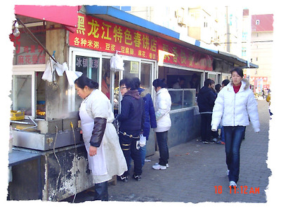 상무대 앞 초미니 먹자골목입니다. 도시락이나 춘빙, 그리고 지단빙(계란후라이에 감자볶음이나 야채를 섞어 넣은 것), 만두 등을 파는데요. 저는 원래 아침 식사를 거의 안 하기 때문에 1교시 정도 마치면 친구들과 이 곳에 와서 만두 한 2元(1元에 4개 ㅋ)어치 사먹고 들어가곤 했지요. | |
